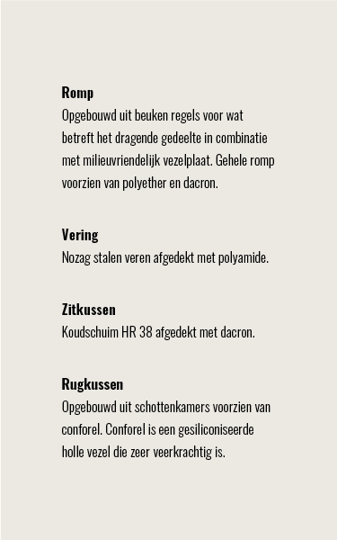 Deze bank is leverbaar in de complete SEVN stof en ledercollectie. Meer dan 170 kleuren verdeeld over 28 stoffen.