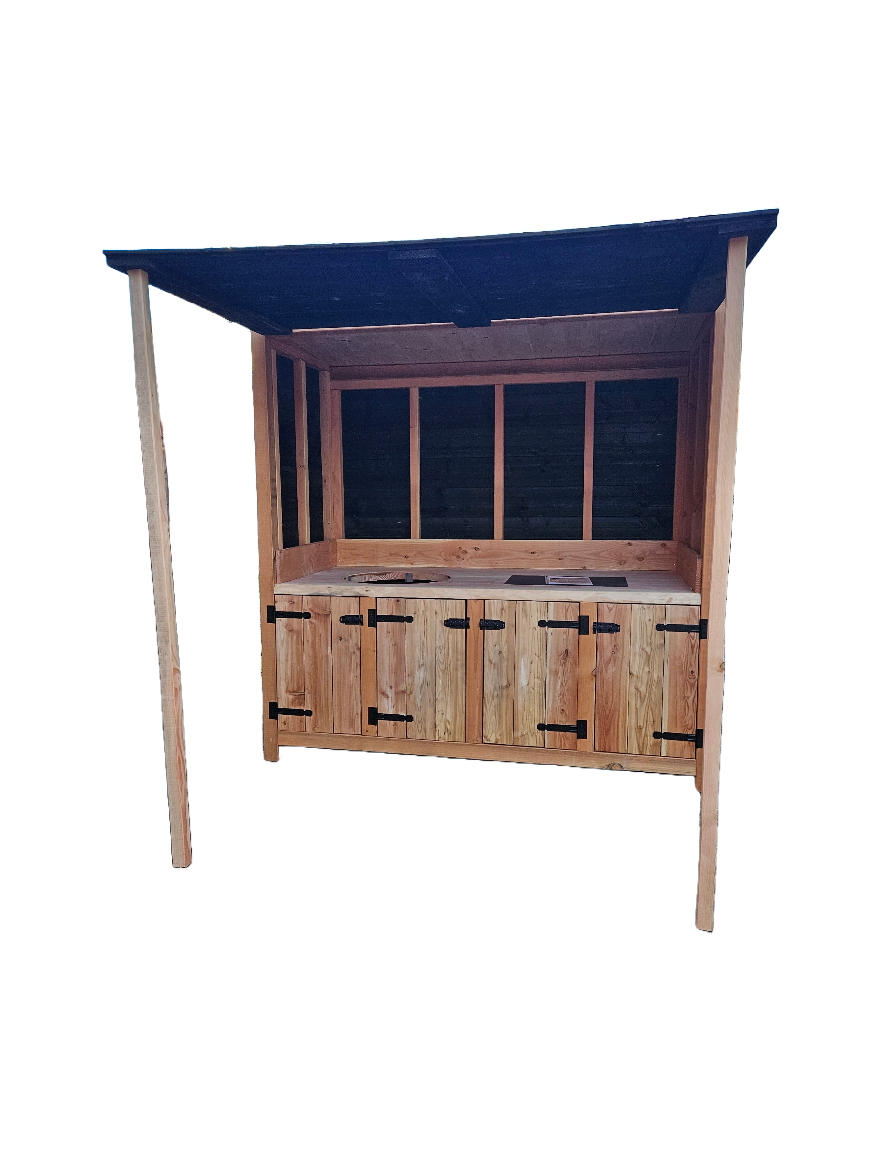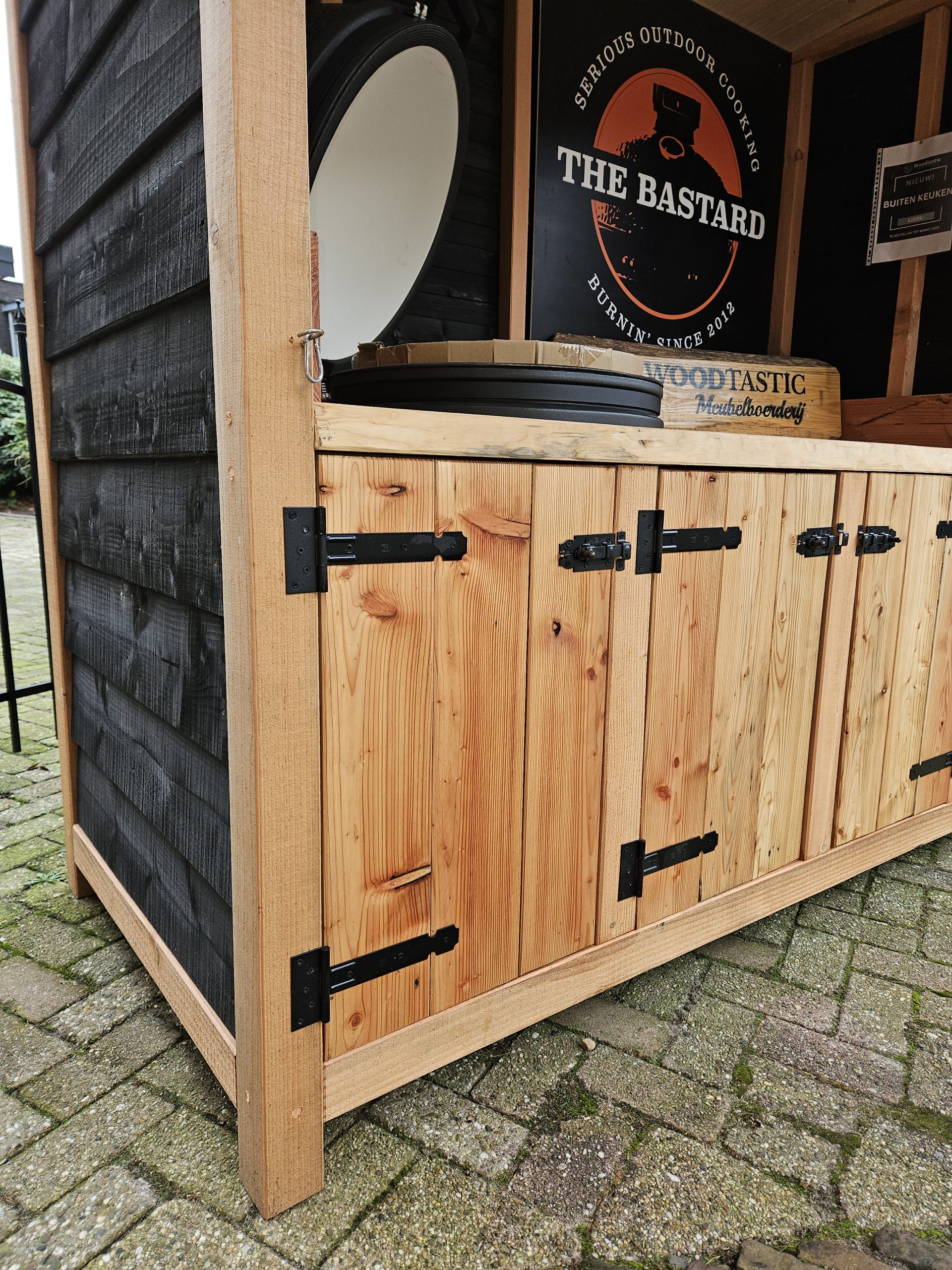 Geniet optimaal van het buitenleven met deze prachtige buitenkeuken, volledig vervaardigd uit duurzaam douglashout. De combinatie van natuurlijk hout en zwart douglashout geeft een stoere, maar warme uitstraling die perfect past in elke tuin.